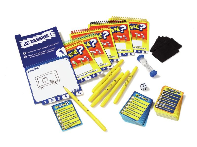 Esquissé ? c’est LE jeu d’ambiance par excellence !Tout le monde connaît le téléphone arabe… Mais que se passerait-il si la parole était remplacée par des dessins ? Comment des ailes d’anges peuvent se transformer en Dracula ? Comment Napoléon peut-il devenir une peinture rupestre ? La réponse en images avec Esquissé ?Et si vous ne savez pas dessiner ? Encore mieux ! La rigolade est assurée !Ce qui, pour vous, semble être un trait de génie, sera pour vos amis le début des ennuis. Quiproquos… Rigolade… C’est sûr vous allez vous retrouver dans la panade !Ce jeu est tellement addictif qu’une fois que l’on a commencé, on ne peut plus s’arrêter de jouer !