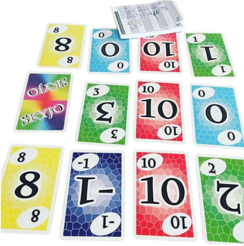 Skyjo, un jeu de cartes haut en couleurSkyjo est un jeu de cartes se déroulant en plusieurs manches. Le jeu prend fin lorsqu'un joueur atteint la barre des 100 points ou la dépasse. À la fin de la partie, celui qui a obtenu le moins de points est déclaré vainqueur. L'objectif de Skyjo est de recueillir le moins de points possible tout au long de la partie.