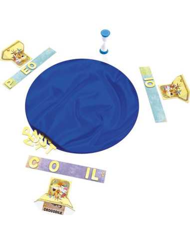 Retrouvez le nom des animaux !Après leur bain quotidien dans le lac Komentutapel, un phénomène étrange s’est produit : les animaux ont oublié leur nom ! Aidez-les à le retrouver !À chaque manche, piochez une carte Animal facile ou difficile, que vous devrez faire deviner. Pour cela, au signal, tous les joueurs plongent la main dans le sac et essayent de trouver des lettres, grâce à leur sens du toucher, pour compléter au maximum le nom de leur animal. Au top, c’est fini, tout le monde retire sa main et réagence au mieux ses lettres sur son plateau. Ensuite, animal par animal, les autres joueurs doivent deviner quel animal le joueur tentait de reconstituer. Chaque réussite permet d’acculer des étoiles.À la fin de la 5e manche, comptez le nombre d’étoiles remportées tous ensemble et évaluez votre score. Serez-vous aussi bon que le lion ?