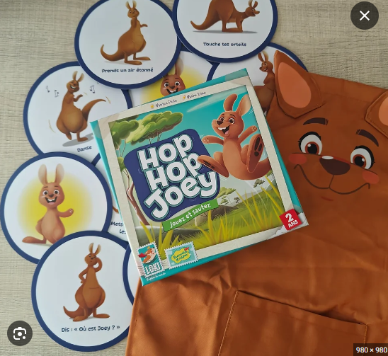 Jouez avec votre enfant à partir de 2 ans !Hop Hop Joey familiarise votre enfant avec les règles de base du monde du jeu : suivre des directives simples et jouer chacun son tour. Hop Hop Joey invite votre enfant à se dépenser tout en vous permettant de rire ensemble. Suivez les règles du jeu ou inventez les vôtres ! Avec les enfants de 2 ans, les expériences les plus réussies sont souvent celles qui permettent la souplesse et l'improvisation. Si votre enfant ne connaît pas l'une des actions, faites-la en premier et laissez-le vous imiter. Vous serez surpris de voir à quelle vitesse il s'adaptera. A 2 ans, les enfants adorent montrer leurs capacités, alors laissez-les s'exprimer !