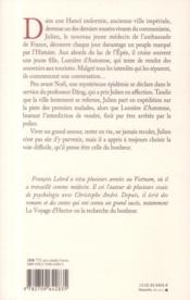 Dans une Hanoï endormie qui commence à peine à s'ouvrir au monde, Julien, un jeune médecin français, qui n'a connu ni guerre, ni révolution, découvre chaque jour un peu plus un peuple marqué par l'Histoire. Il travaille à l'ambassade de France mais son temps libre il l'occupe à parcourir le pays et à apprendre sa langue. Aux abords du Lac de l'Epée, il croise souvent une jeune fille en chapeau conique, Minh Thu, Lumière d'Automne, qui tente de vendre des souvenirs aux premiers touristes pour nourrir sa famille. Une complicité naît entre eux, mais ils savent que tout les sépare. Au contraire, tout devrait rapprocher Julien de Clea, une collègue britannique détachée pour un an à l'Institut Pasteur de Saigon, qui rêve d'un avenir avec lui. Peu avant Noël, une mystérieuse épidémie se déclare dans le service du Professeur Dang, vétéran des guerres révolutionnaires, qui a pris Julien en affection. Tandis que la ville lentement se referme, Julien et Clea partent en expédition sur la piste des premiers malades, pendant que Lumière d'Automne, bravant l'interdiction de vendre, finit par être arrêtée par la police... Vivre un grand amour et rester en vie, Julien n'est pas sûr d'y parvenir, mais il a appris de son père à toujours choisir la voie difficile.